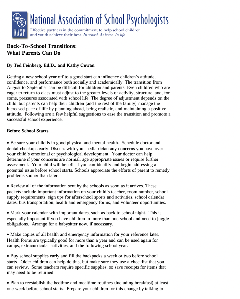 Back to School Transition: What Parents Can Do